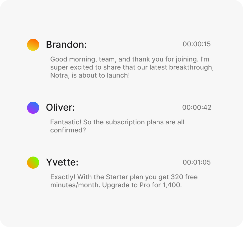 Notra makes capturing and organizing important conversations more reliable and efficient, giving you greater peace of mind in your work.