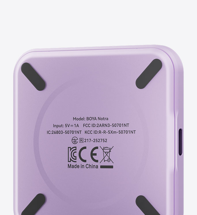 Smaller than a credit card, BOYA Notra is incredibly compact. Black and Silver remain timeless, while Cosmic Orange and Purple add a vivid pop of color to your life. Made from refined microblasted aluminum alloy, it feels impressively light yet solid in hand and stays cool even through long recording sessions.